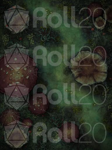 C'mon, everybody take a trip with me, down the lazy river, by the mushrooms trees! Were those fungi always so big, or has your party suddenly been greatly reduced in size? One potion makes you larger, one makes you small...Sound familiar? Fully animated and available in three versions, sparkly, fae-touched, and as part of a more muted swamp no doubt filled with lizardfolk and hags aplenty, let your players experience marsh life at its finest in this fungal funscape!