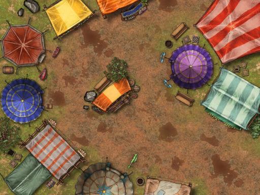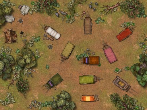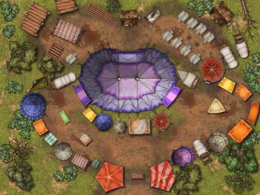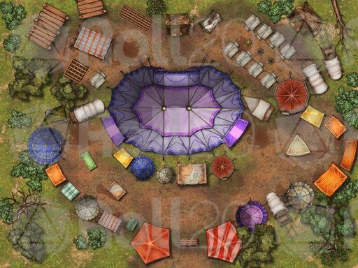 Midnight Carnival: Mommy Fortuna's Midnight Carnival has come to town! Or it could be used as a Gypsy Caravan, stopping for the night. Several wagons are clustered in a nice formation.