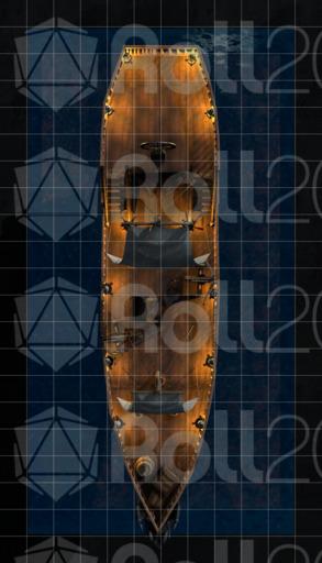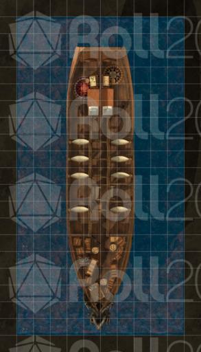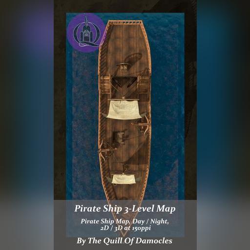 Yo Ho Ho and a bottle of rum, me hearties! Feast yer eyes on the new PIRATE SHIP map! Well. I say "pirate ship," but it could also be a merchant vessel, or a party-owned ship that they ahem acquire in their journeys! Either way, this 3-level ship map comes equipped with a pair of ballista, two masts, a raised helm, and three stories; the main deck, the main deck + Captain's Quarters, and the below-decks crew quarters, officers cabins and storage room! It's a smaller, sleeker, faster ship, so it won't be slugging it out with any galleons any time soon...unless the crew gets creative ;)