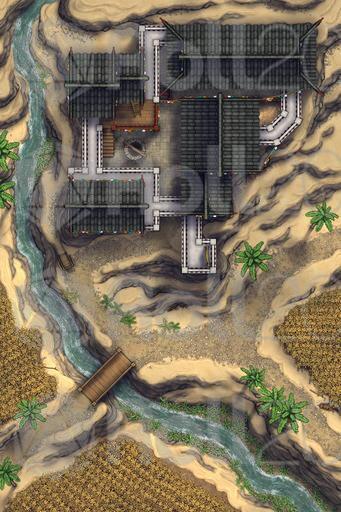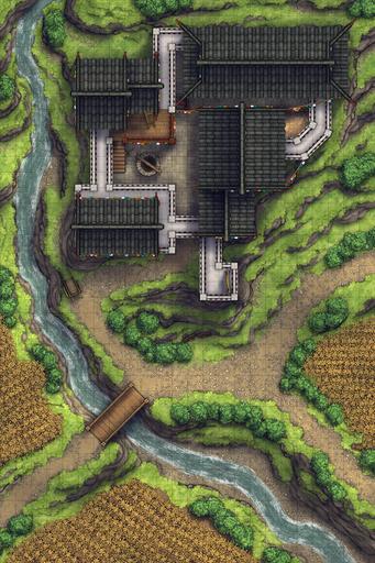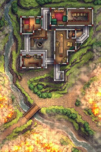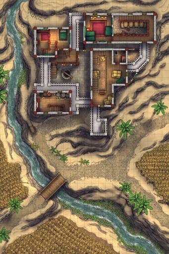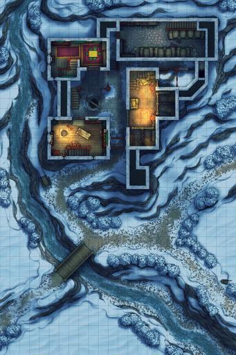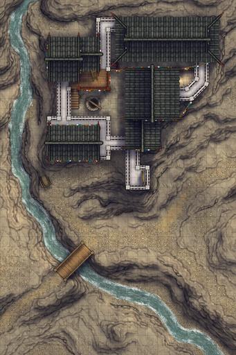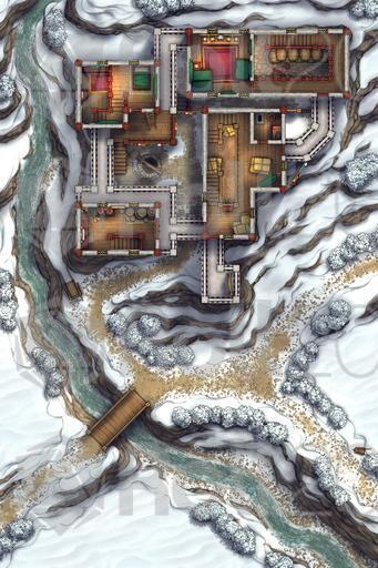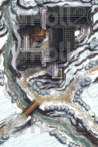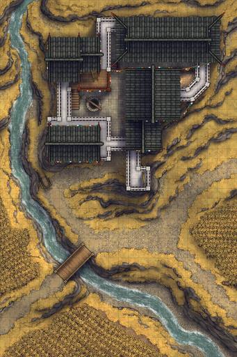 A fortified farmhouse battlemap, drawn from Tibetan architecture & based on the climate of the cold nomadic steppes! Here is where the richest of the local land-lords oversees their fields from, inside an ancestral home built up over generations. It may not look like much, but compared to the stone cottage neighbors, this luxurious manor is a veritable baron's keep, and can keep out any raiders that may come past!