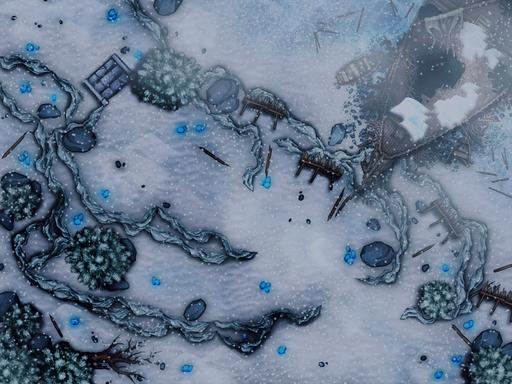 Frozen North Wreckage Battle Map (32x24) (2K, 4K, and 8K resolutions) (Grid and Gridless)