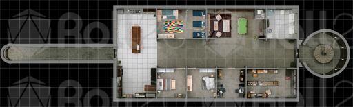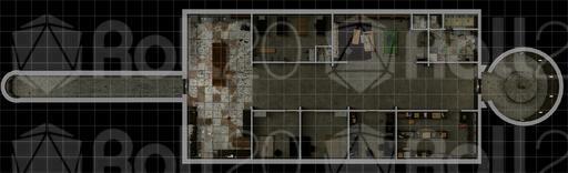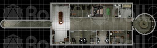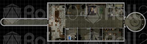 There's a Sci-Fi variation which is also military in flavor, but with fancy floor panels, a high-tech medical room, and lots of gewgaws and screens everywhere. The Trouble variation is a gory take on the military map, and Empty is, well, empty.