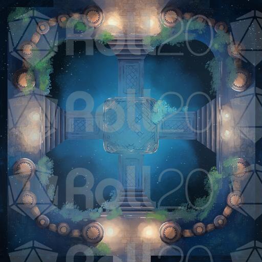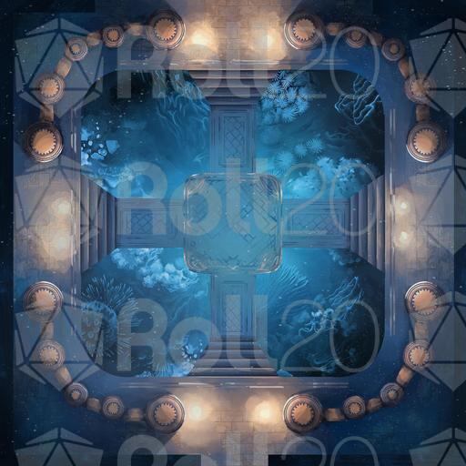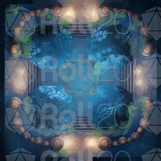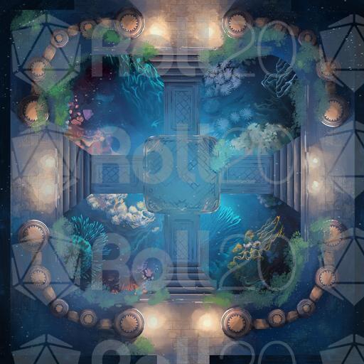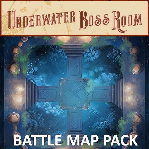 This battle map pack includes several variations of the Underwater Boss Room Battle Map.