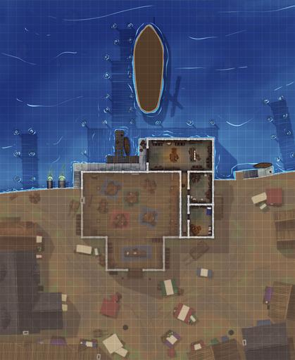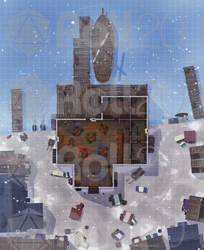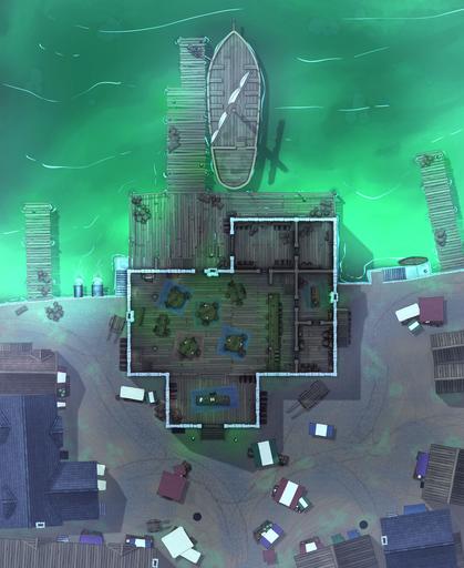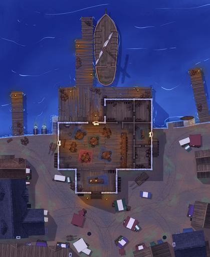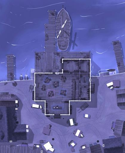 This multi-level port building is ideal for campaigns featuring pirates, smugglers, merchant guilds, dockside taverns, naval patrols, or shady waterfront deals. Whether your party is negotiating shipping contracts, uncovering contraband in the storerooms, or fending off a midnight pirate raid, this map is ready for any harbor or coastal encounter.