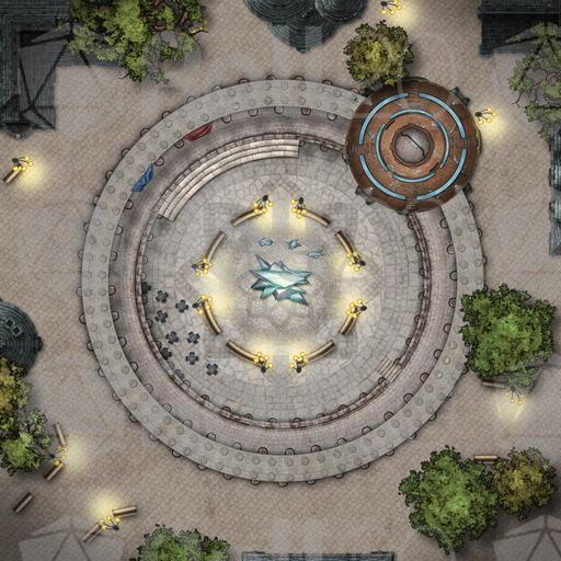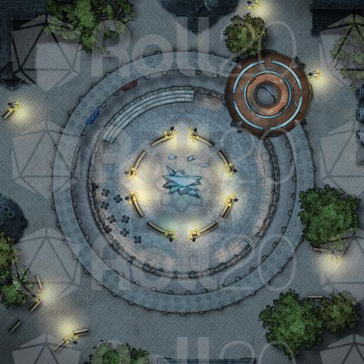 Rebellions are built on hope. Sometimes, that hope is shattered. Other, better times, it is rewarded with freedom, emancipation, and a welcome end to oppression. Commemorating such an accomplishment is surely deserving of a public monument like the one at the heart of this plaza, a memorial to the losses, the sacrifices, and the ultimate, costly victory over oppression. History is known to repeat itself, however, and the spectre of tyranny is never very far from returning. Whether you choose to keep this plaza a peaceful reminder of atrocities past, with its comfortable cafés and fashionable shops, or whether it is to be the site of yet more despotism, this map is a perfect staging ground for peaceful protests and gatherings where nothing could possibly go wrong! Available in day and night versions, as well as an other more fantasy-inspired version, you can almost already hear the people sing! The Galaxy is Watching!