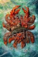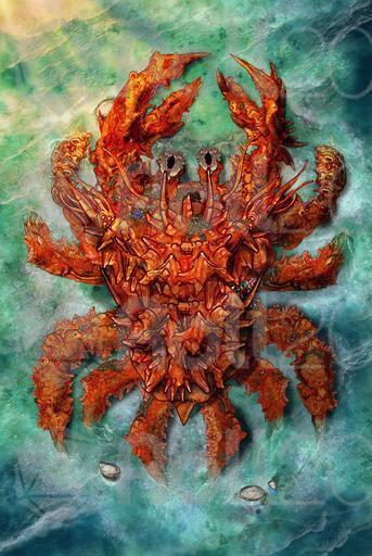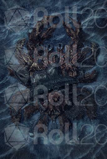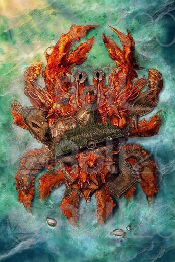 We were three ships strong when we saw it—looked like an island, all quiet and still. I yelled to steer clear, as I was meant to do hic. Then it moved. Legs like towers, shell covered in wrecks older than some empires.