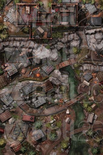 24x36 Battle map of a hillside shanty town