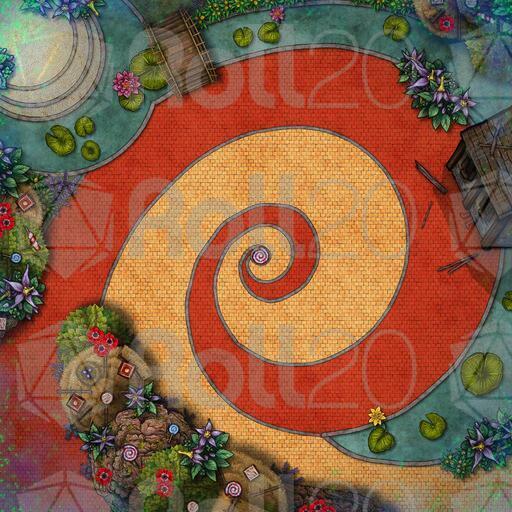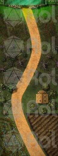 Down, down, down the road, down the swirly road…A yellow brick road in one direction, a crimson road in the other – the perfect decision point for bold new adventurers and experienced ones alike, whether they be natives of this strange and colourful land, or after have just arrived through a portal, a tornado, or the copious consumption of “the good stuff” at the local tavern. This gloriously colourful map is fully animated, and two variants are also available! The first features an unfortunate farmhouse crushing incident that claimed the life of a local resident, magic practitioner, and red shoe aficionado, and the other a longer map of the golden road with many unique sights and obstacles along the way, from a corn field, to apple trees, by way of a creepy forest and a field of poppies, all the way to a mysterious jade wall…Officially endorsed by the esteemed luminaries of the Lollipop Guild, we’re pleased to welcome you to the land of Mr. Munchkin Man!