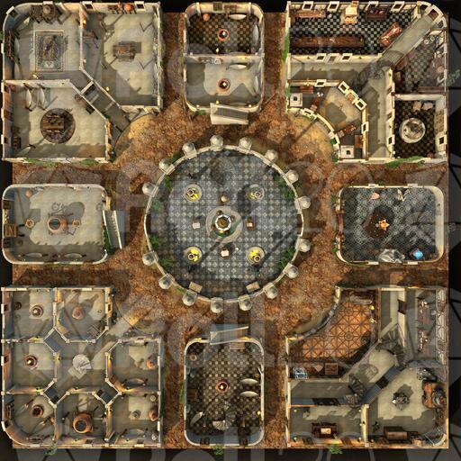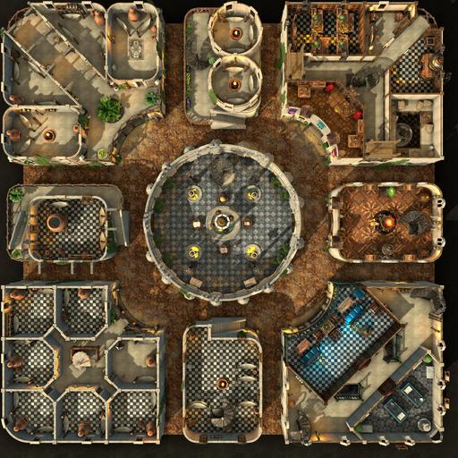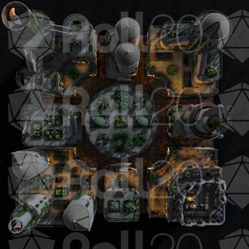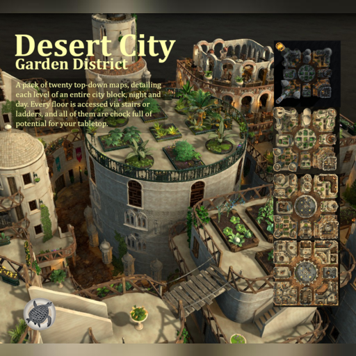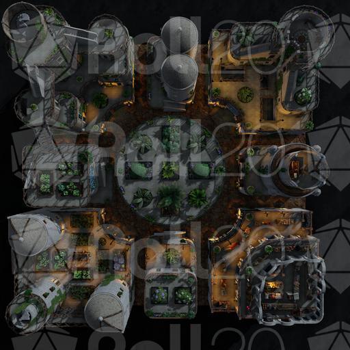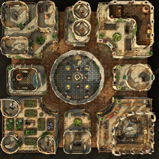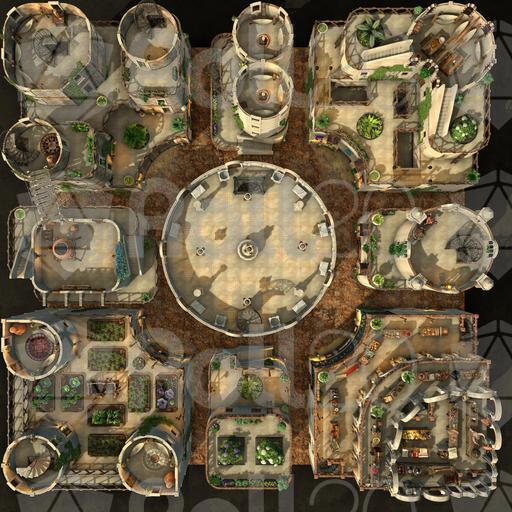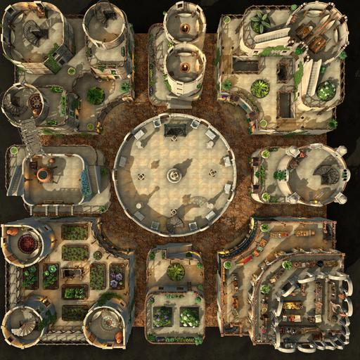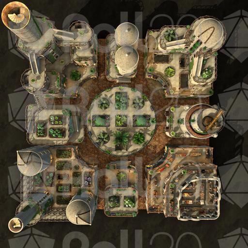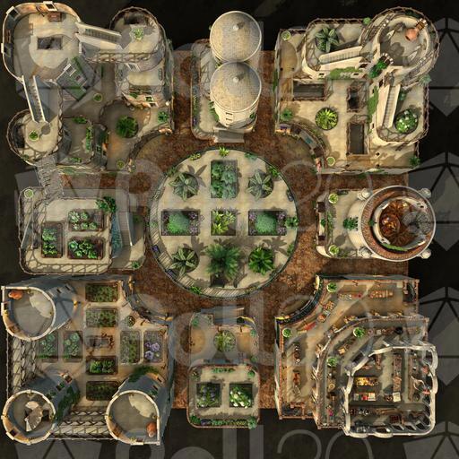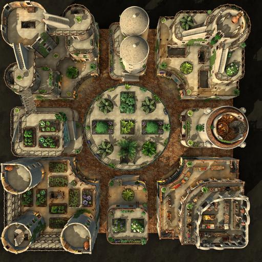 The Garden District of this desert city is light, airy, and green with hanging and climbing plants. Rooftop gardens grace many of the buildings, growing herbs and vegetables to supplement the residents' diet. Each room is set up individually, and every level is rife with