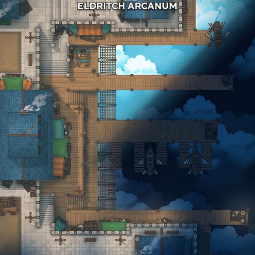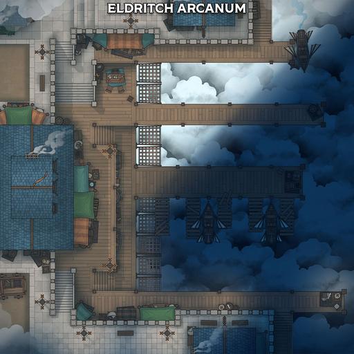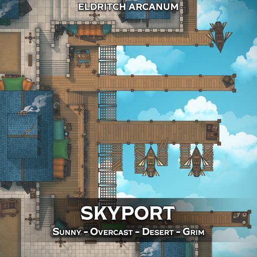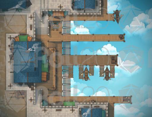 A map pack focused on the Skyport, a bustling harbour that works with clouds and sky ships, rather than oceans and sailing ships!