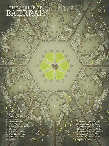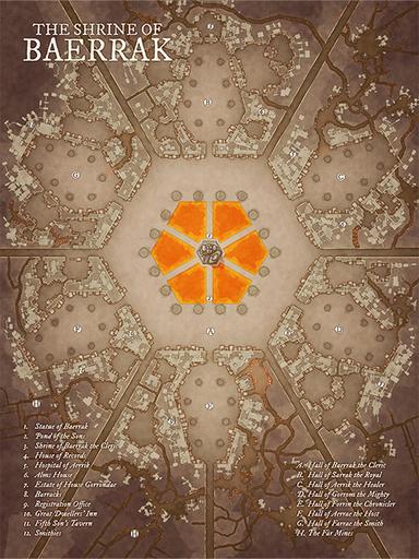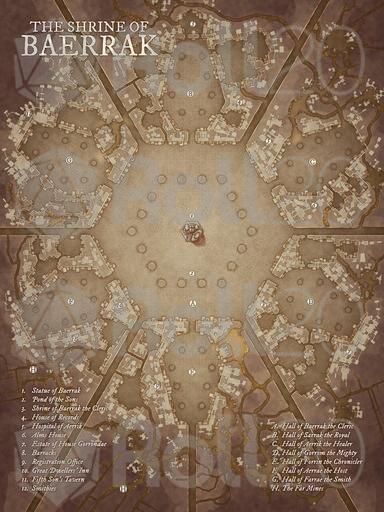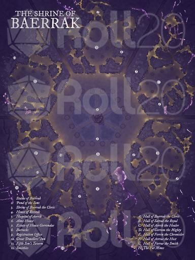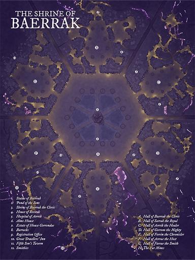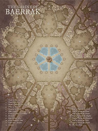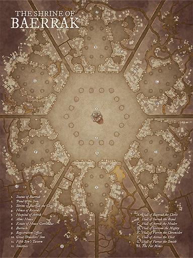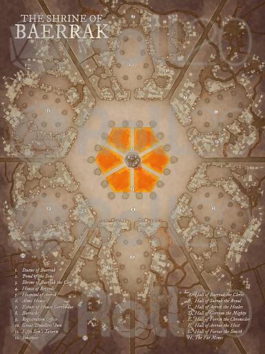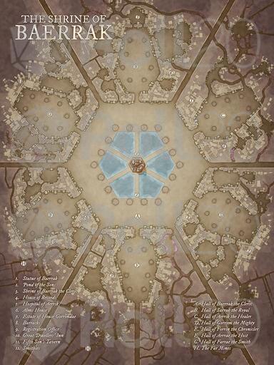 The Shrine of Baerrak lies deep beneath the heart of the Raemar Range. It is one of the greatest religious complexes in all of dwarvendom, dedicated to the legendary and mythical founder of the dwarven kingdom of Domari. It is said he was the first dwarf to hear the mountain spirits, and that he led his people into the mountains.