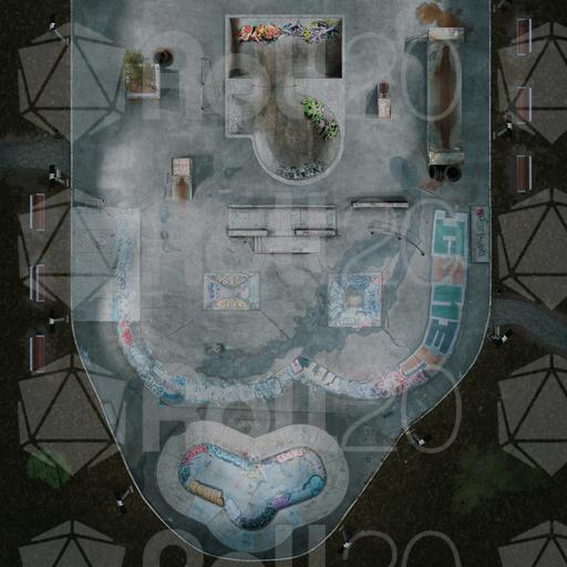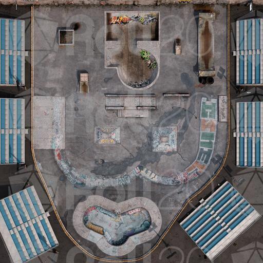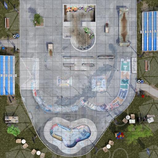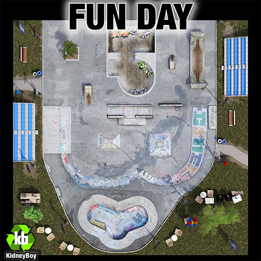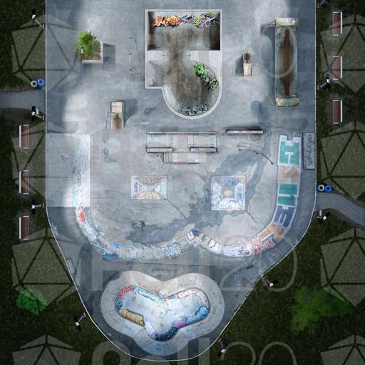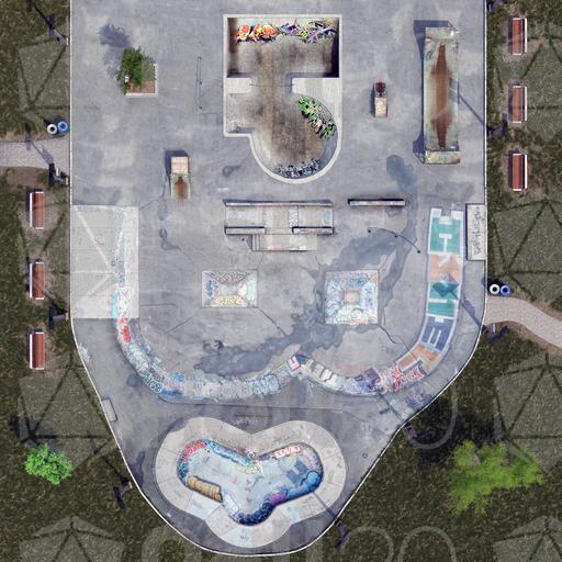 Find adventure in this big, well-tagged park! There's an Abandoned version for your creepy and/or post-apocalyptic needs and a version that got built-up for competition and demonstration with Stands.