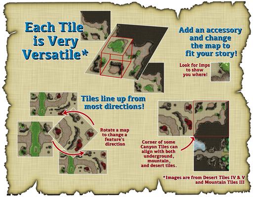 Wild Boar maps are designed to line up forward and backward and upside-down. The main maps are 20x20, large enough to use alone, and small enough to combine for larger exploration. The smaller tiles are just the right size to place over some features to customize your maps.