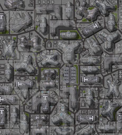 A very large map of a whole city full of tall buildings. Perfect for Cyberpunk or Coruscant.