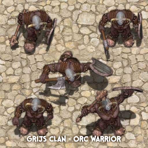 The Grijs Orc Clan pack of monster character tokens is one part of the Orc Horde Token package. This pack contains the Grijs Clan of Orcs, who come from deserts and mountains. Within this pack, you will find the following 3D-rendered monster character tokens: