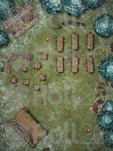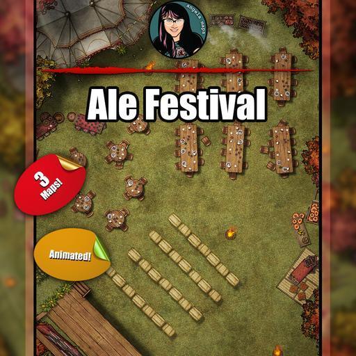 Roll out the barrel, we’ll have a barrel of fun! The leaves are changing, the season is turning, so what better time to celebrate the harvest than by attending a celebrated, local ale festival? Bound to provide countless hours of entertainment, copious amounts of libation, and potent potables for the whole, err, adventuring party! Let’s just hope that no thirsty or rowdy ne’er-do-wells show up to disrupt the celebration…Fully animated and available in three festive variants, including a more muddy spot in front of the grand stage, and a winter ale festival complete with a beautifully decorated gingerbread house, this map should be consumed without moderation. Prost!
