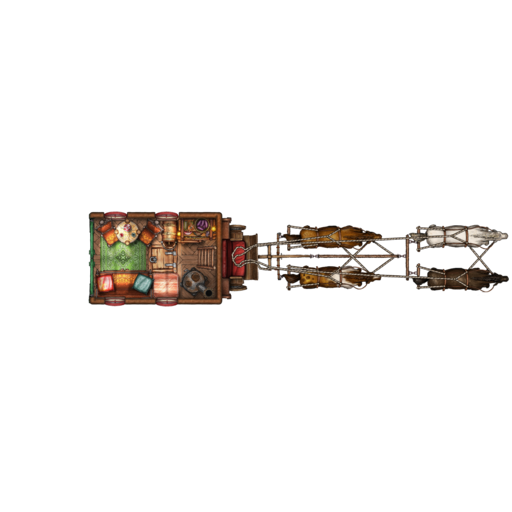 Traveling vast distances, like from your sprawling manor to the grand council hall half a mile down the road, can certainly be a arduous and tiring affair for the gentry. But fear not! With this luxury wagon you can repose across the couch when feeling faint, or nap in the overhead compartment when exhausted from counting stacks of money.