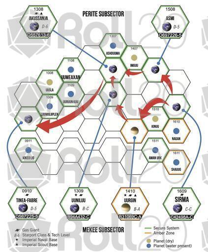 The Core is the seat of empire for the Third Imperium, a highly populated and industrialised region of space civilised for thousands of years. It is also home to several reserve worlds, some of which are places where the Imperial feudal nobility go to rest and play. Tinea-Fabre is a candidate to become the fourth reserve world in the sector, hosting a lush ecosphere with dozens of imported alien animals.