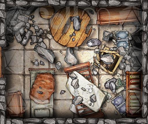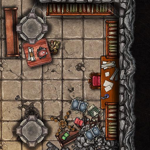 Now abandoned, this refectory bears the scars of intrusion. Overturned furniture, scattered tomes, and broken cots. The air is thick with dust and the faint tang of rusted iron. Though it once served as a place of study, rest, and community, someone else has claimed it in the long years since.