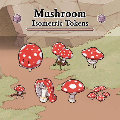 Seven Digital Downloadable Mushroom Isometric Tokens