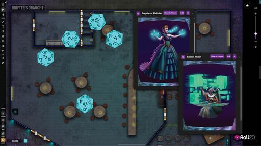Portraits and Handouts from the Guilt of the Grave World Art Pack, displayed on the Roll20 VTT.
