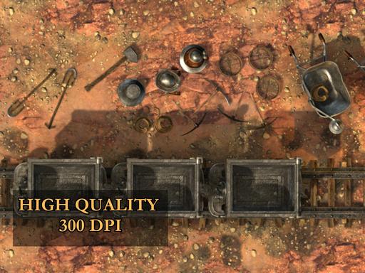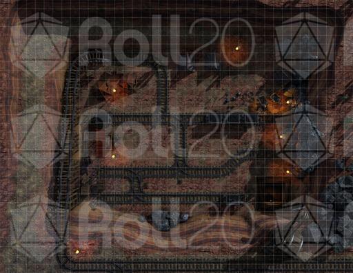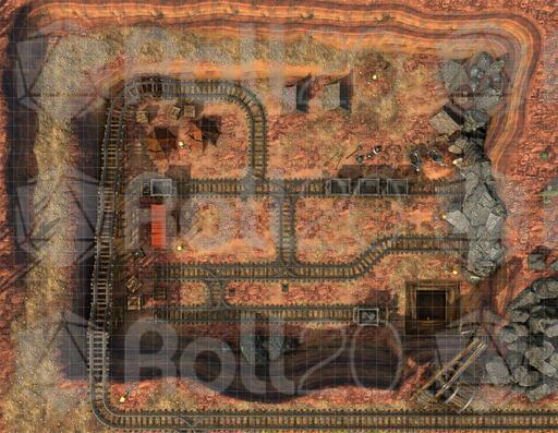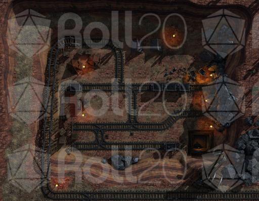 The Mine Battlemap is a 40x32 encounter map featuring a rugged mine, rail tracks, and camp structures. Perfect for ambushes, exploration, or smuggling operations — this map brings gritty realism to your campaign’s underground adventures.