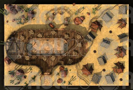 Comes with two levels - the main level and a viewing balcony - a fighting pit and an outdoor camping area. Comes with 2D / 3D, Day / Night, Gridded / Gridless!