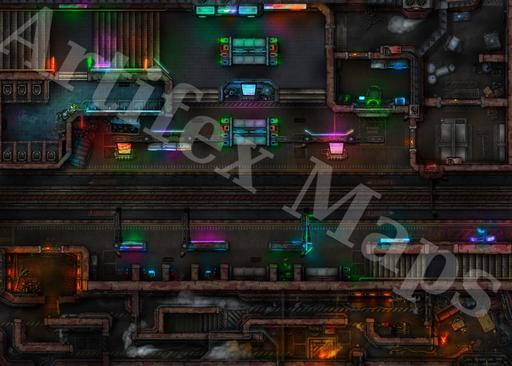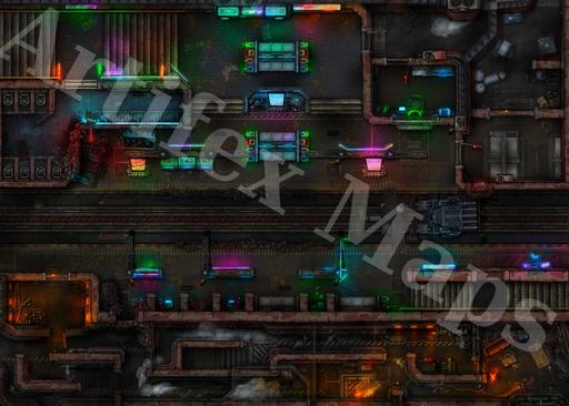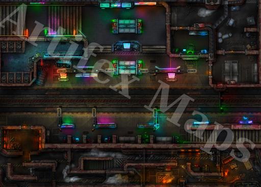 Cyberpunk Metro Platform is a map-set of three alternative layouts of our 35x25 Battle-map
