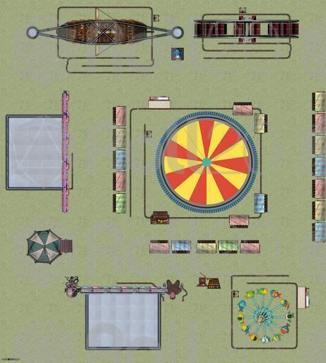 Amusement Park: Midway, funhouse, haunted house, fortune teller's tent