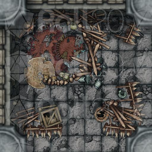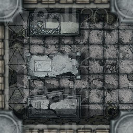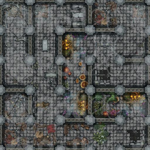 Stone walls surround you, be them in a castle a temple or outlying ruins. Twists and turns abound. Corridors lay shrouded in webs. Here and there stand the scattered remnants of bandit or goblin activity. And here, surrounded by coffins and memorials, is that the groan of a ghoul... or some other undead horror?