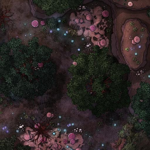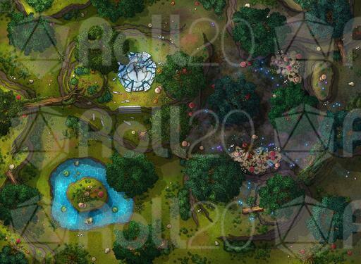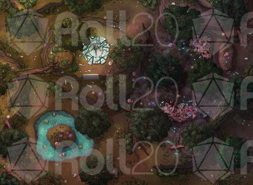 ➤ Moss Bear Grove. [30x20] A mist-shrouded forest grove littered with enchanted plants. [🌓 Night & Day Variants] [🎨 Color Variants]