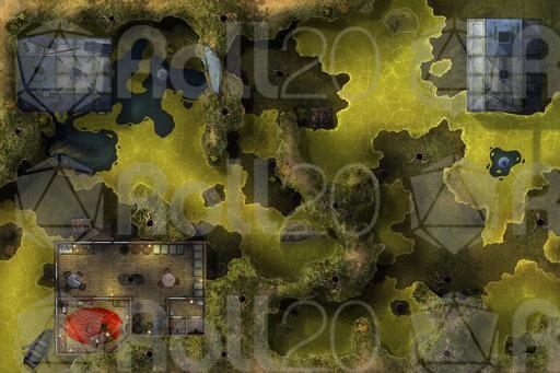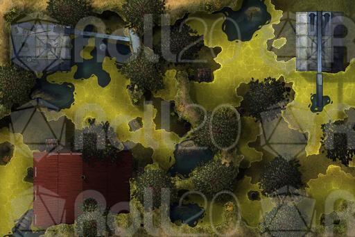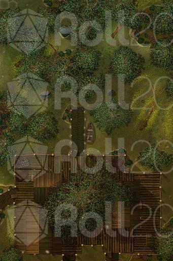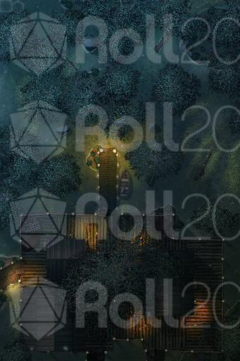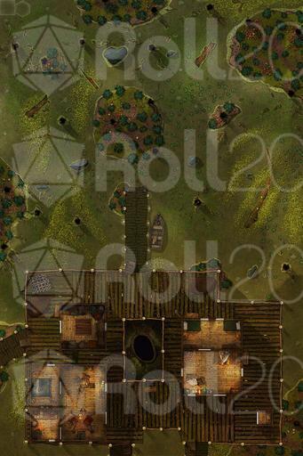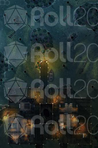 ➤ Swamp Huts. [20x30] A cluster of wooden buildings built raised above the swamp for safety. [🌓 Night & Day Variants] [🏨 Multi-floor Map]