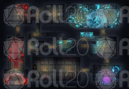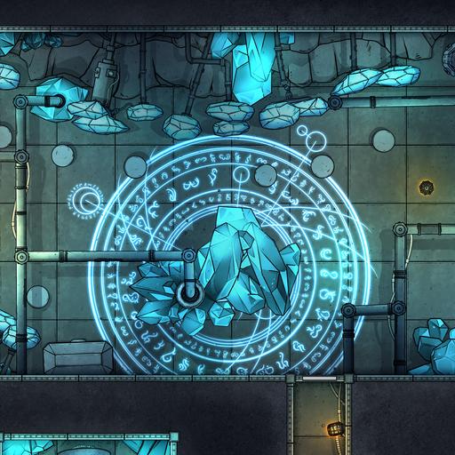 ➤ Crystal Basement. [30x20] Strange corridors of magic crystals, metal walls, eerie sconces, and corpse-filled altars
