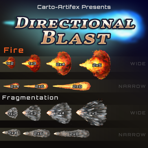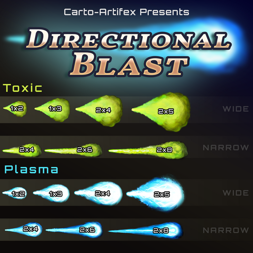 Directional Blast Template Set contains Narrow directional templates and Wide directional templates for four elements you might find on your roleplaying journey! These templates are universal and not designed for any particular game system, though many game systems will have flame throwers, toxic spray traps and plasma guns you might find these useful! All of these templates are hand-drawn and of our own design, they combine clear readability while gaming and keeping your measuring tools immersive at the same time!