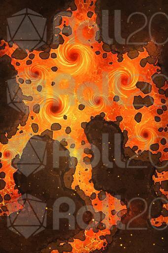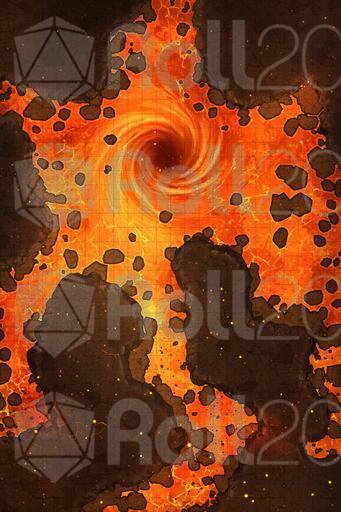 It is said this place was destroyed by a massive volcanic eruption. At the center of the chamber burns an endless pool of lava, surrounded by stone platforms that barely withstand the heat and the passing of time. The lava creeps forward slowly, as if the volcano still breathes.