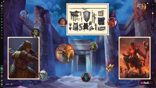 Tokens and Portraits from the Forgotten Realms: Heroes of Faerun Art pack displayed on the Roll20 virtual tabletop, including beautifully-crafted pop-out tokens featuring a dragonborn, a tressym, a spirit dragon, and many more!