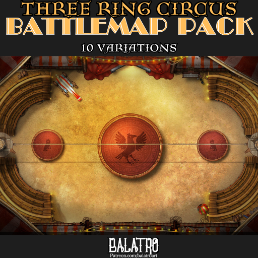 I like the idea of the ringmaster forcing the players to do minigames, Like Trivia about their last adventure, or Quickly solving a maze before too many rounds pass. And those who fail become charmed. This map is a redesign of one of my very old yet still quite popular maps that lots of new subscribers like, so I wanted to give it a new coat of paint and bring it up to my more recent standard while also adding in a handful of fun new variations! I tried my best to include the various flavors of the curious carnival trope as I could, Evil, Abandonded, ring of fire, human cannonball, Clown parade, and some that jumped off the idea of a the large tent, like the warcheif’s or nomad’s tents.