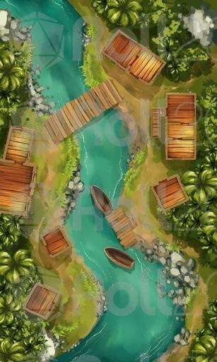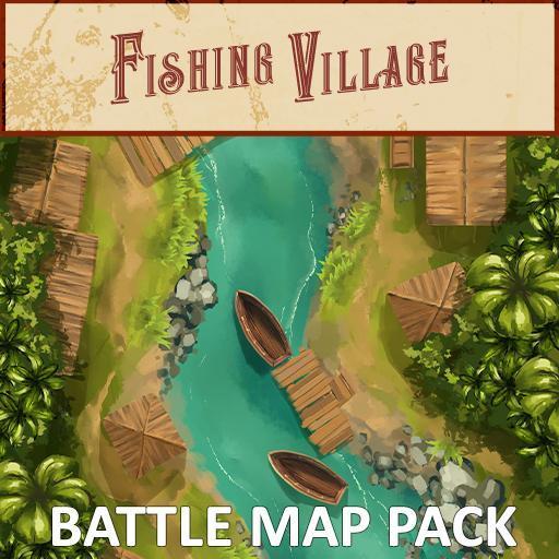 This battle map pack includes several variations of the Fishing Village Battle Map.