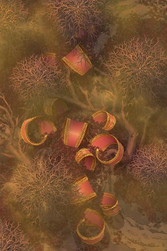 The Junk Masks were possibly once an attraction of the circus but now the broken heads lie out in the woods, half buried and surrounded by rotting logs. They may be possessed, infested, or cursed. The carnies will tell you all sorts of stories about them, for a fee.