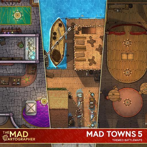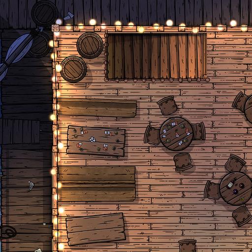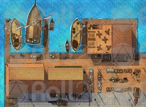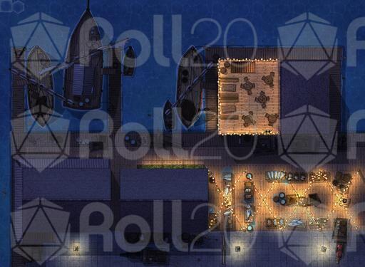 ➤ Fisherman's Wharf. [30x22] A small tavern and harbour master's office sit on this active dockside overlooking the bay. [🌓 Night & Day Variants]