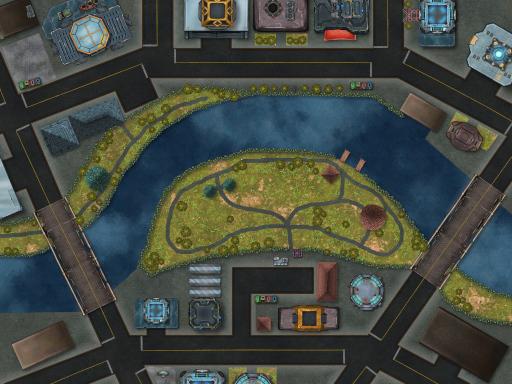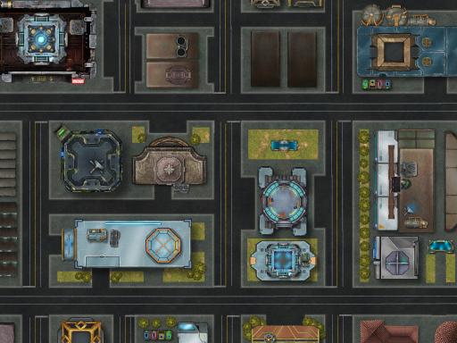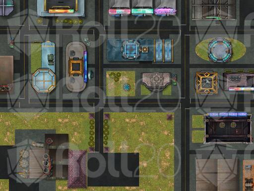 Cityscape and urban jungles, a great place for an adventure. These maps are of a LARGER SCALE than normal! These were made to give an overhead view of a larger section of a city than the standard battlemap. This scale is specifically made to go well with vehicular combat games like MechLabor: Kaiju Combat! Giant Robots and Mighty Monsters are much more fun to play on a large map, so here are a few to tear up!