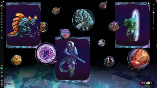 Tokens and Portraits from the Alien Core Art Pack displayed on the Roll20 VTT.