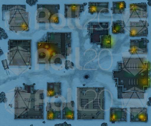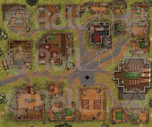 This map pack contains a 60x50 fantasy village. Day/Night and a winter varient is included as well as roof tiles for gamemasters. Locations on map include a smithy, general goods store, temple, stable, and several quiet homes.