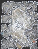 Those arriving in the air node appear on a plateau atop a central spire, standing 200 feet above the floor level and reaching to within 50 feet of the cavern's roof. A steep slope down spirals from the peak. Light seems to come from the ceiling of the cavern, casting a soft twilight glow throughout the area.
