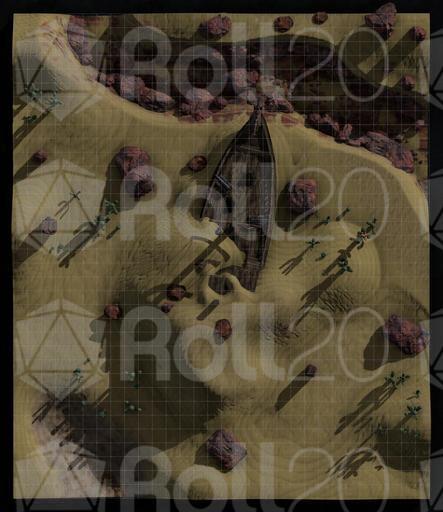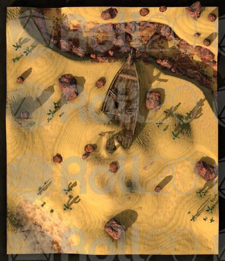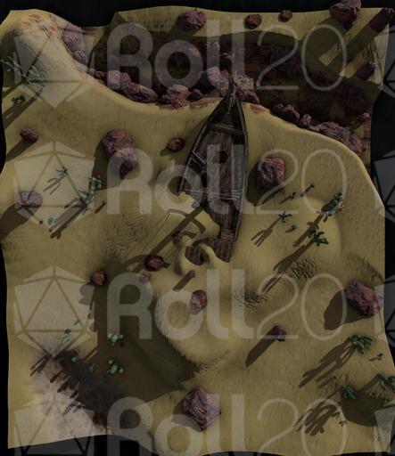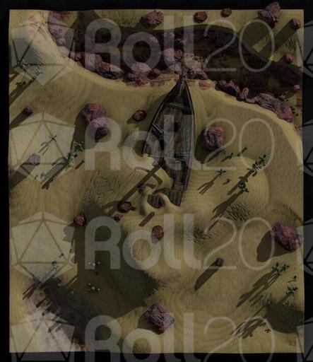 Based on the SS Denham in the UK, this derelict ship has recently been unearthed by the shifting sands of the desert. How did it get there? Where did its crew go? What was it carrying? Up to you! A favoured theory among me and my friends is either that a Sea Druid just got upset and took their pet ocean with them, or - my favourite - they used a tsunami to yeet the ship onto land.