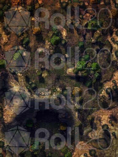 Your contact in town swore this forest would lead you to a secret cave entrance. She promised you unending darkness, bioluminescent mushrooms, glowing magical crystals and dwarven artifacts galore. When you finally catch a glimpse of the cavernous maw opening in the earth, your heart sinks: you are not alone in this forest. This is probably the reason your contact elected not to accompany you, in spite of the promised riches.