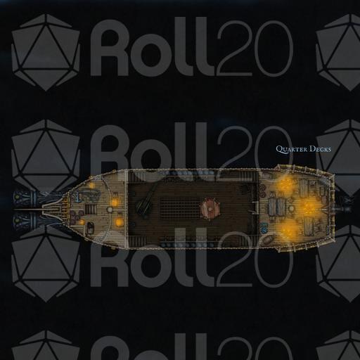 Main deck, Quarter decks / castles, cannon deck, and lower decks are featured in both lit and unlit and grid and no grid versions. There are even a few variants that are cut out for boarding action map builds if needed.