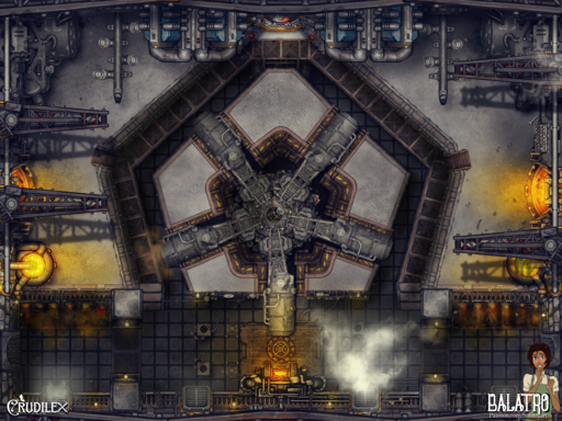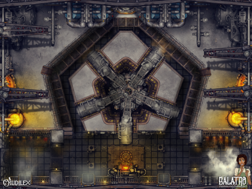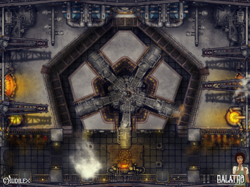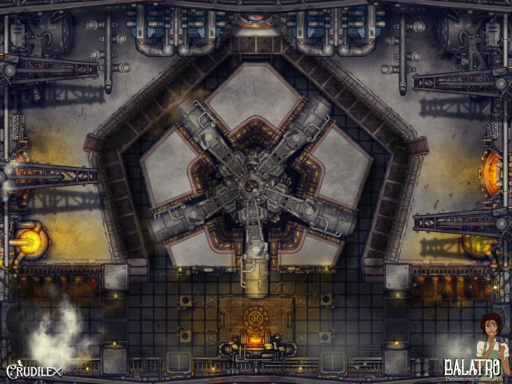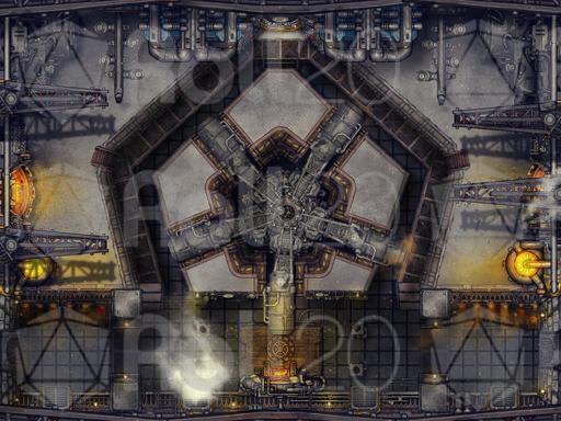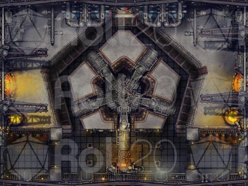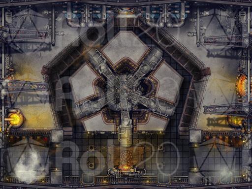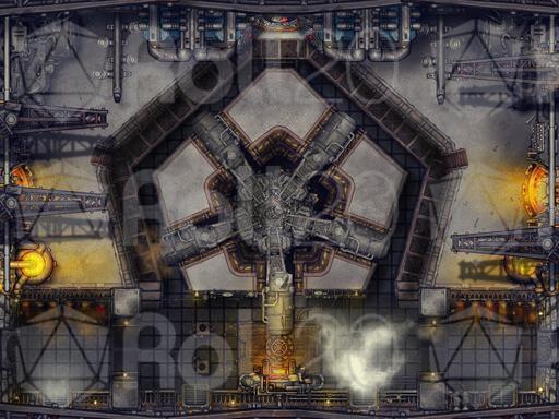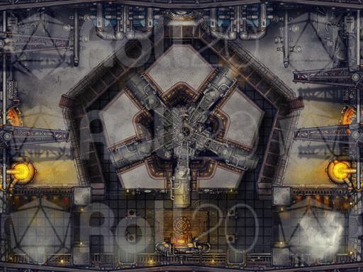 For this map I wanted to imagine the whirring insides of a super complex machine, Something like an airship or walking castle the players had to board and take down from inside! I even tried to make the lifts on the right and left move like they are the inside mechanics of a giant walking machine! I was really inspired by Steamboy and Dragonmech.