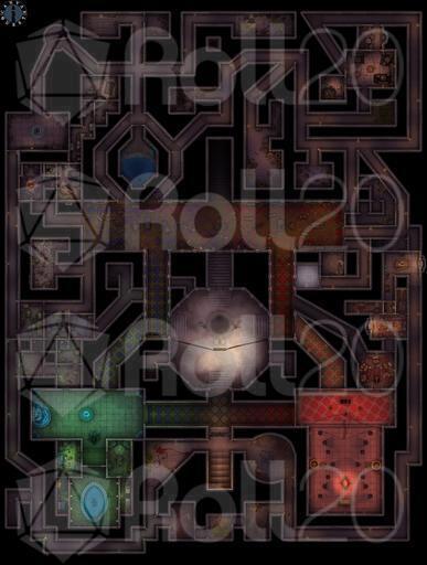A milky radiance illuminates this octagonal room. The walls and floor of the room are of polished gray stone with whorls of glittering mica. A circular pit looms in the center of the room. Ranking the pit are two crystal braziers, suspended from tripods by chains of silver. Each emits a faint sickly-sweet perfumed smoke. The doors to the north are bronze, sealed with iron, chained, barred, and bear a warning inscription in runes of some sort.