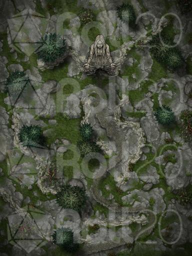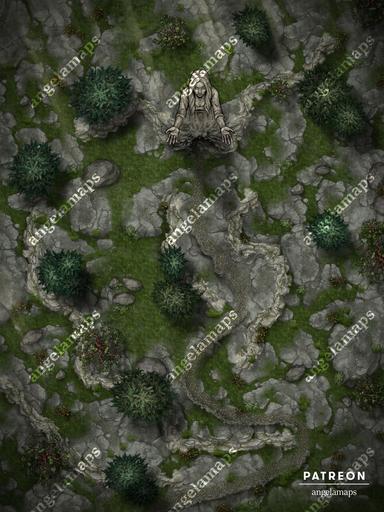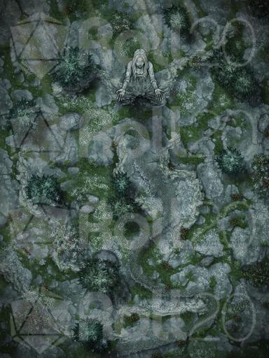 High upon the bluffs, where mist and fog entwine with the lowest wispy tendrils of the clouds, an ancient stone statue stands, beckoning to those bold and hardy enough to have braved the steep climb. Is her serene expression that of a benevolent deity, providing shelter from the elements, the cryptic smile of a goddess of mysteries, inviting truth-seekers to her crucible, or the deceptive smirk of some foul divine trickster, luring weary pilgrims to their demise? Fully animated and available in snowy and summery variants, let the Mountain Goddess lure your players to their salvation, or their doom!